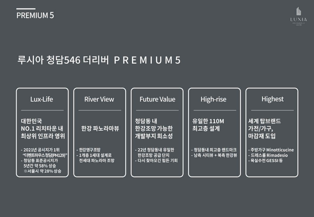 루시아 청담 546 더리버 모델하우스는 100% 방문예약제로